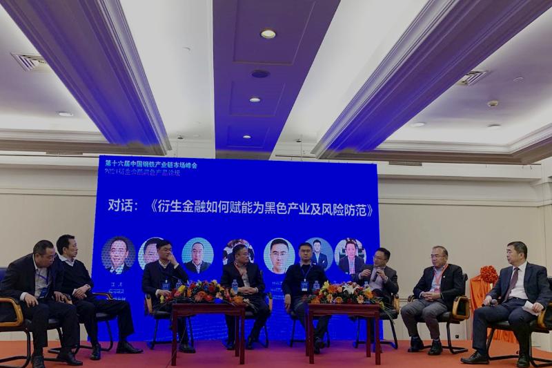 在圆桌对话环节,北铁中心总裁游松、银河期货总经理助理钱涛、敬业集团期货部部长闫艳朝、日照大宗商品交易中心总经理冯益朋、物元实业董事长曹胜、杭州热联股份有限公司总经理助理任尚华、钢钢好电子商务有限公司董事长董向军等围绕“黑色产品期货及场外交易的创新发展”这一主题进行了观点交流与碰撞,衍生金融50人论坛秘书长冯博主持本次对话。与会嘉宾解读国内外经济形势,剖析黑色产品期货发展,从黑色产品期货现状、期货市场对行业企业的积极意义等方面展开了广泛交流,并对黑色产品期货市场如何高质量发展提出了建议和期许。
